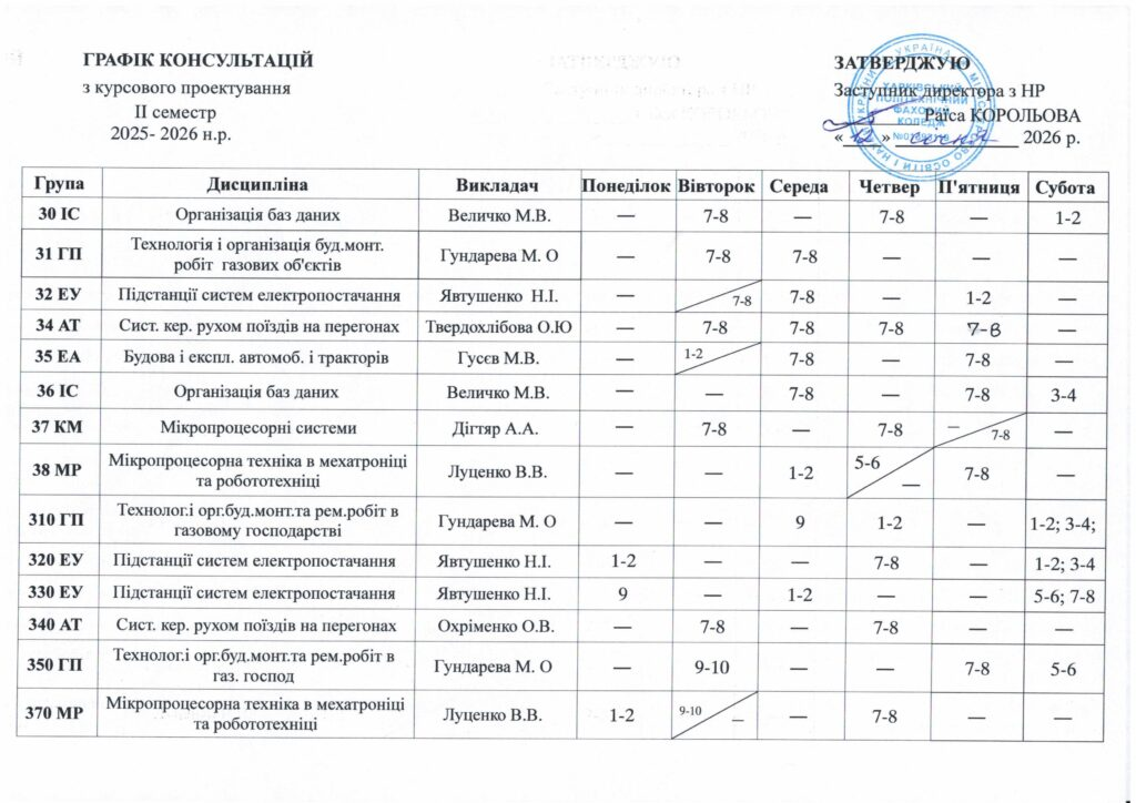 Графік консультацій з курсового проєктування