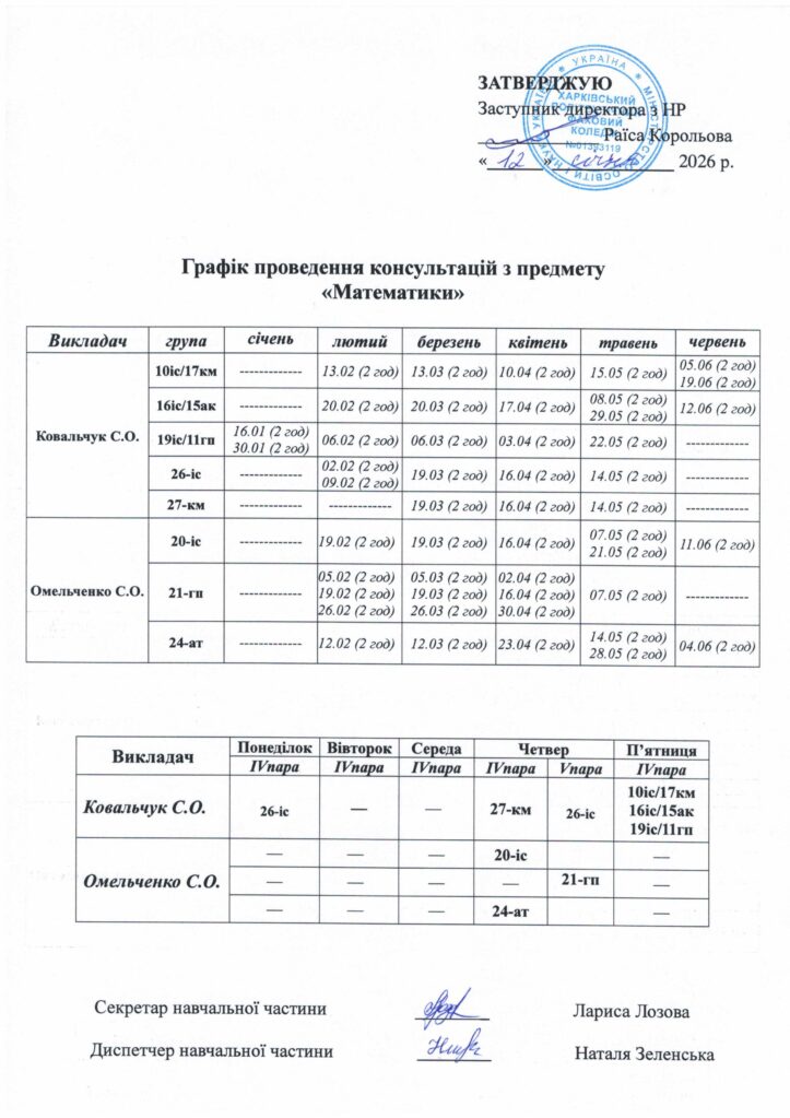 Графік консультацій з предметів