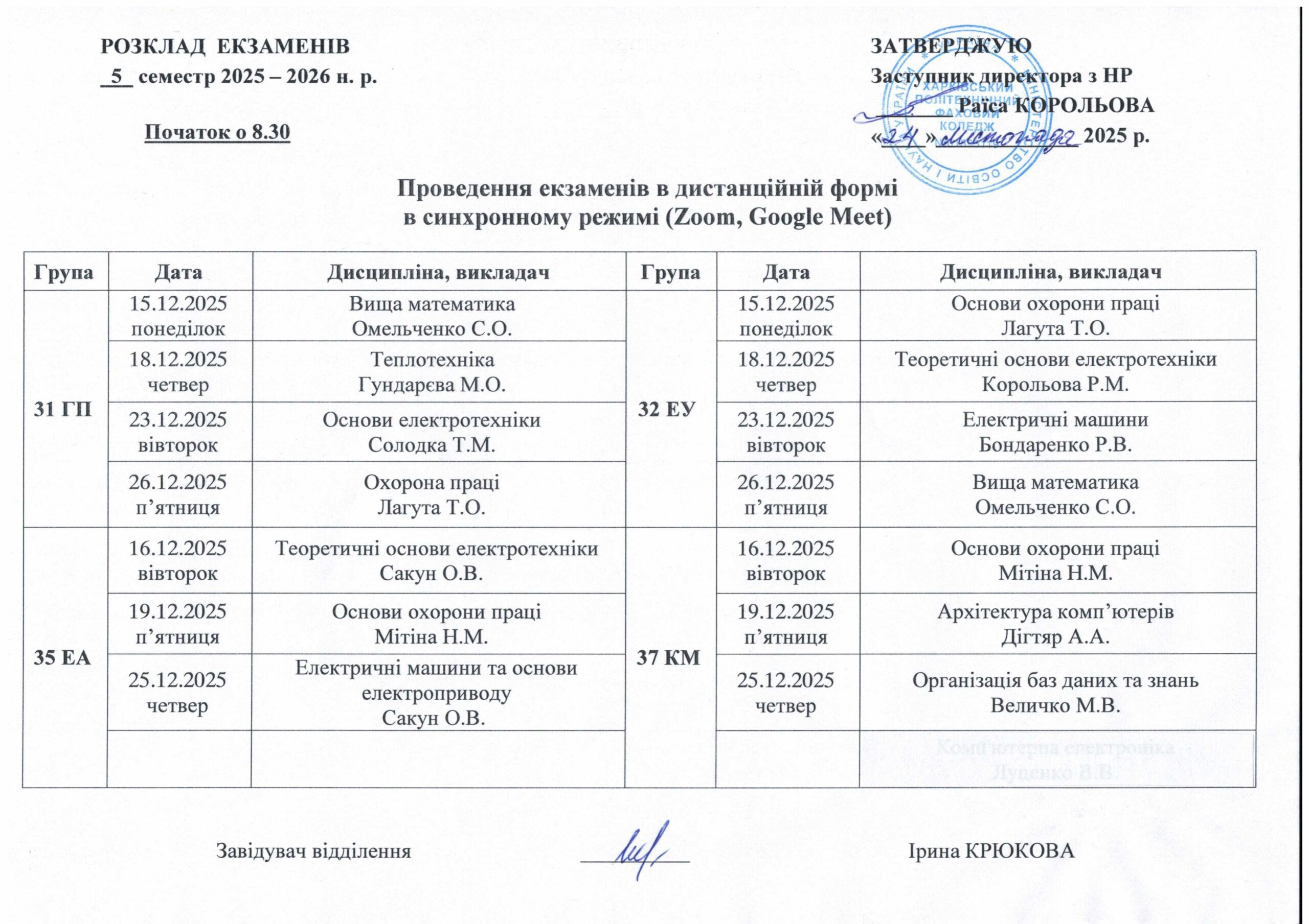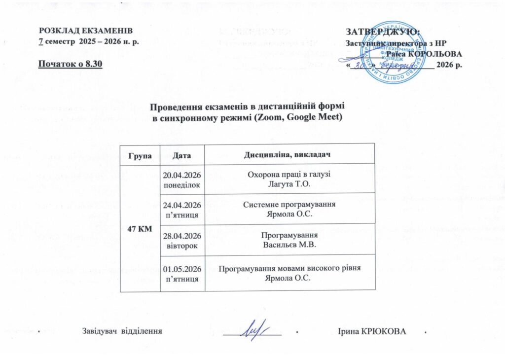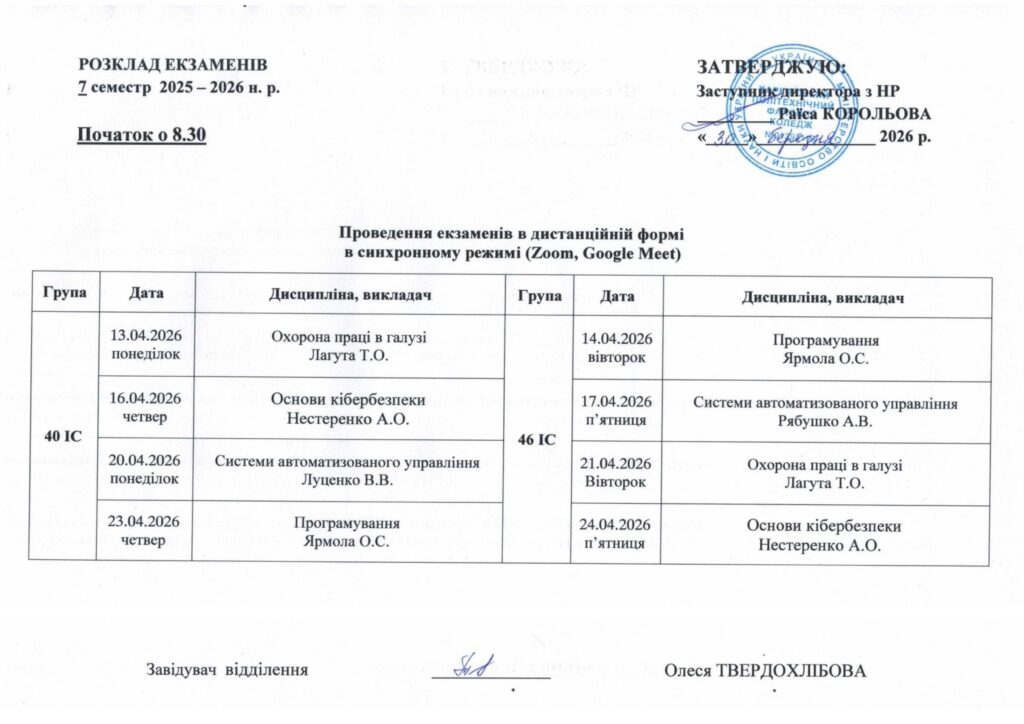 Розклад екзаменів