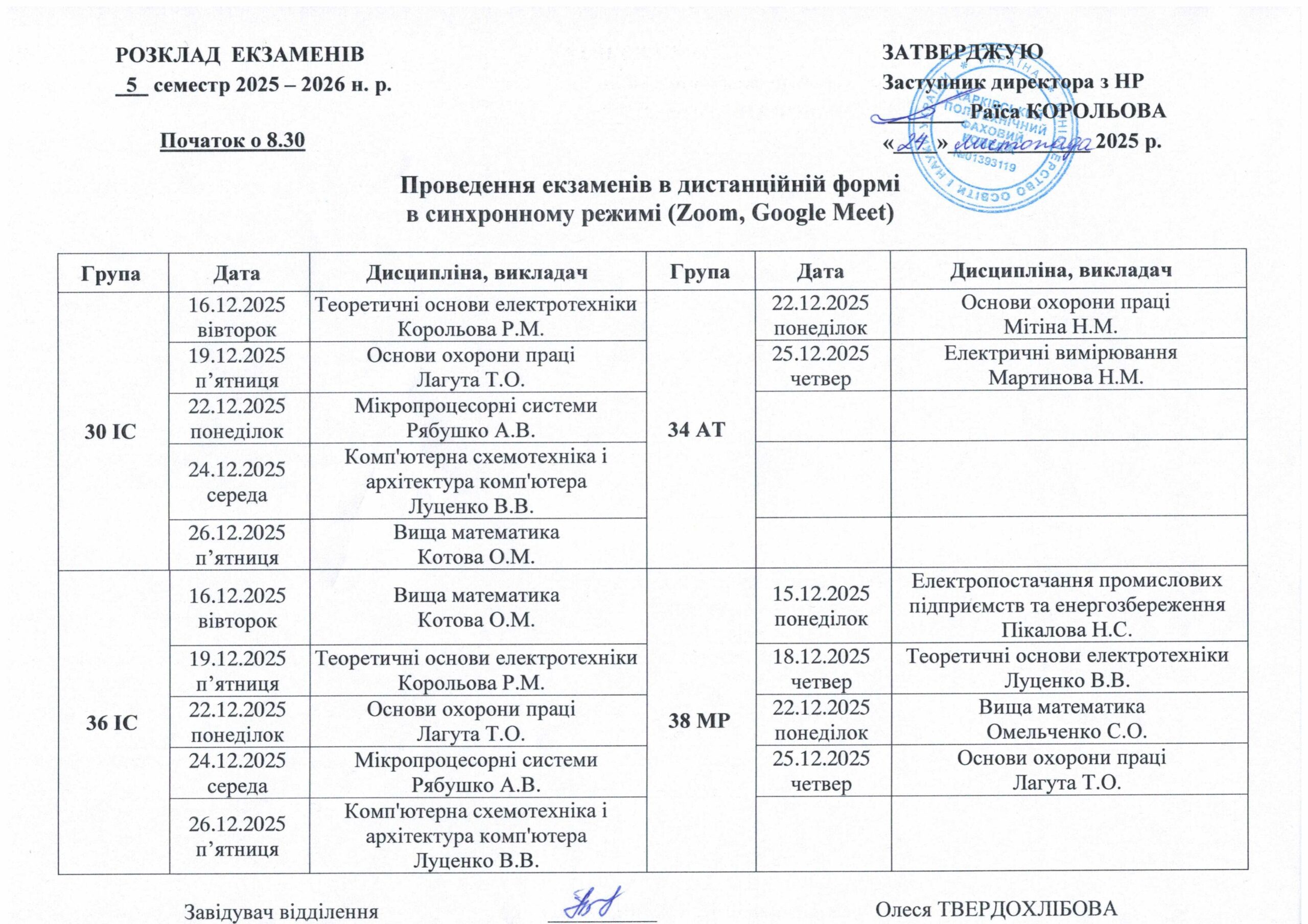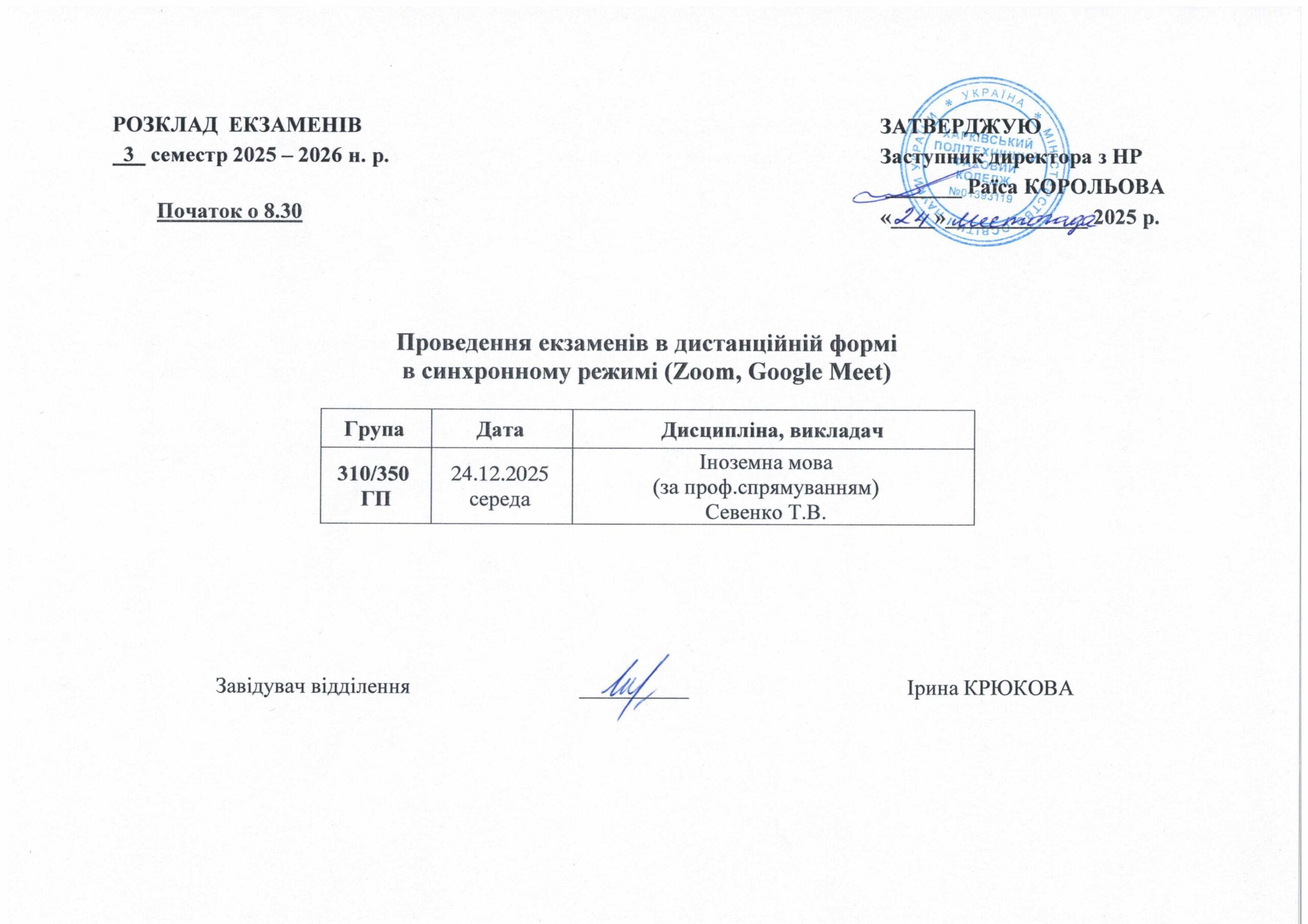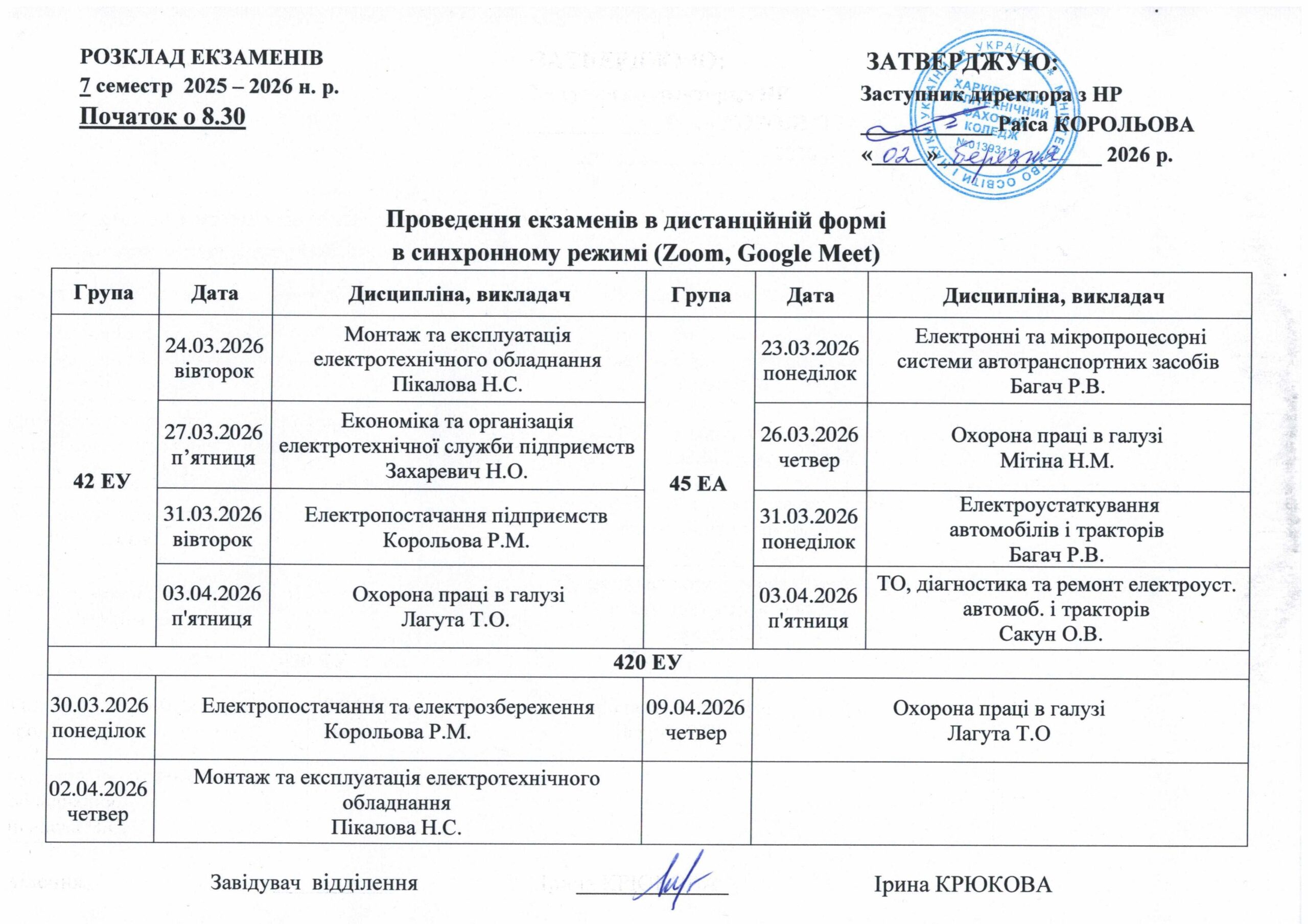 Розклад екзаменів